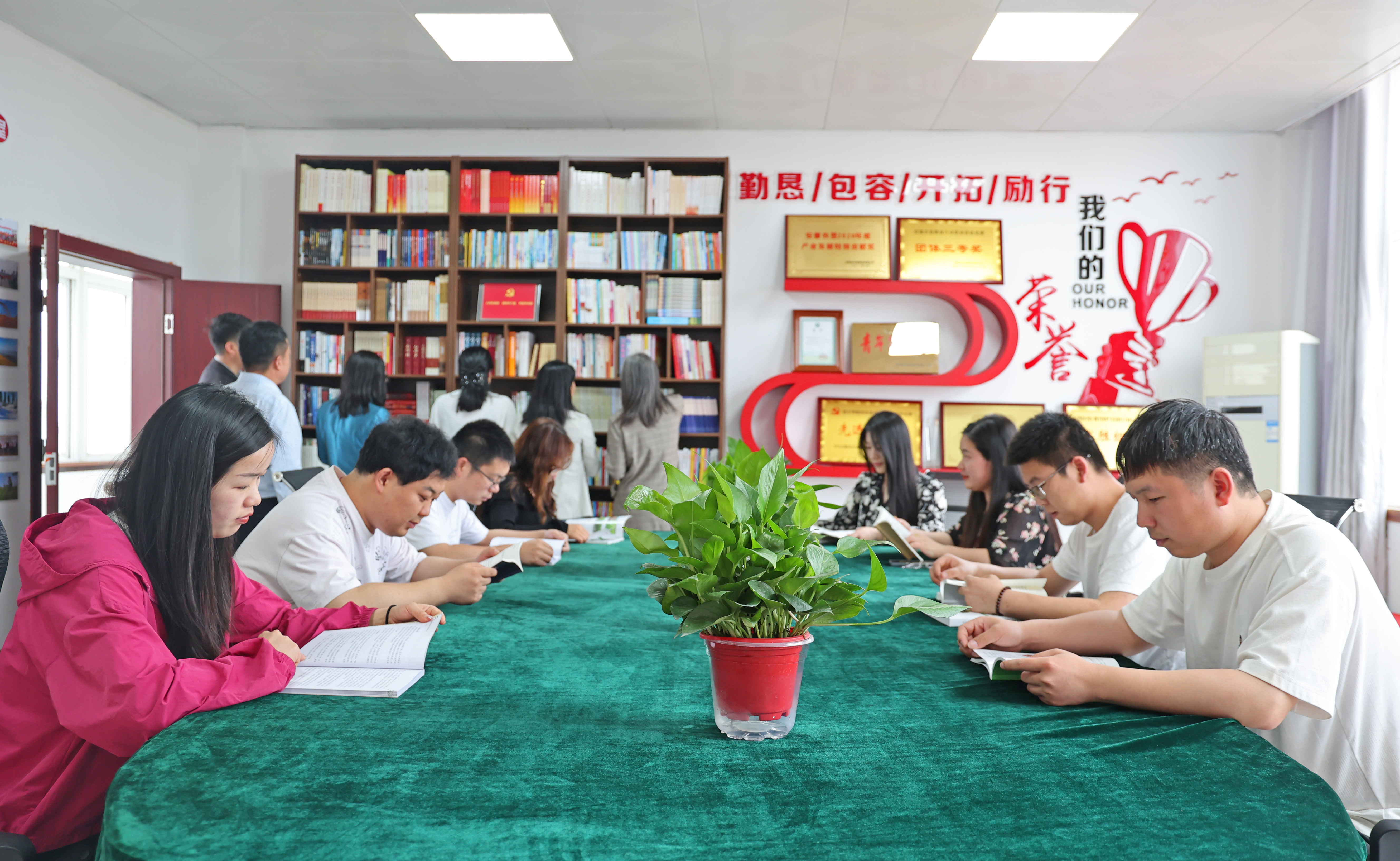 活动当天,农垦集团党委宣传部、团委、工会及农场公司负责人共同为新建的“‘垦’上进”青年职工书屋揭牌。该书屋在集团党委宣传部的指导下,从规划到投用仅用20天,藏书600余册,涵盖政治理论、农业科技、人文社科等类别,设计上注重实用性与开放性,成为青年职工日常学习的“充电站”。