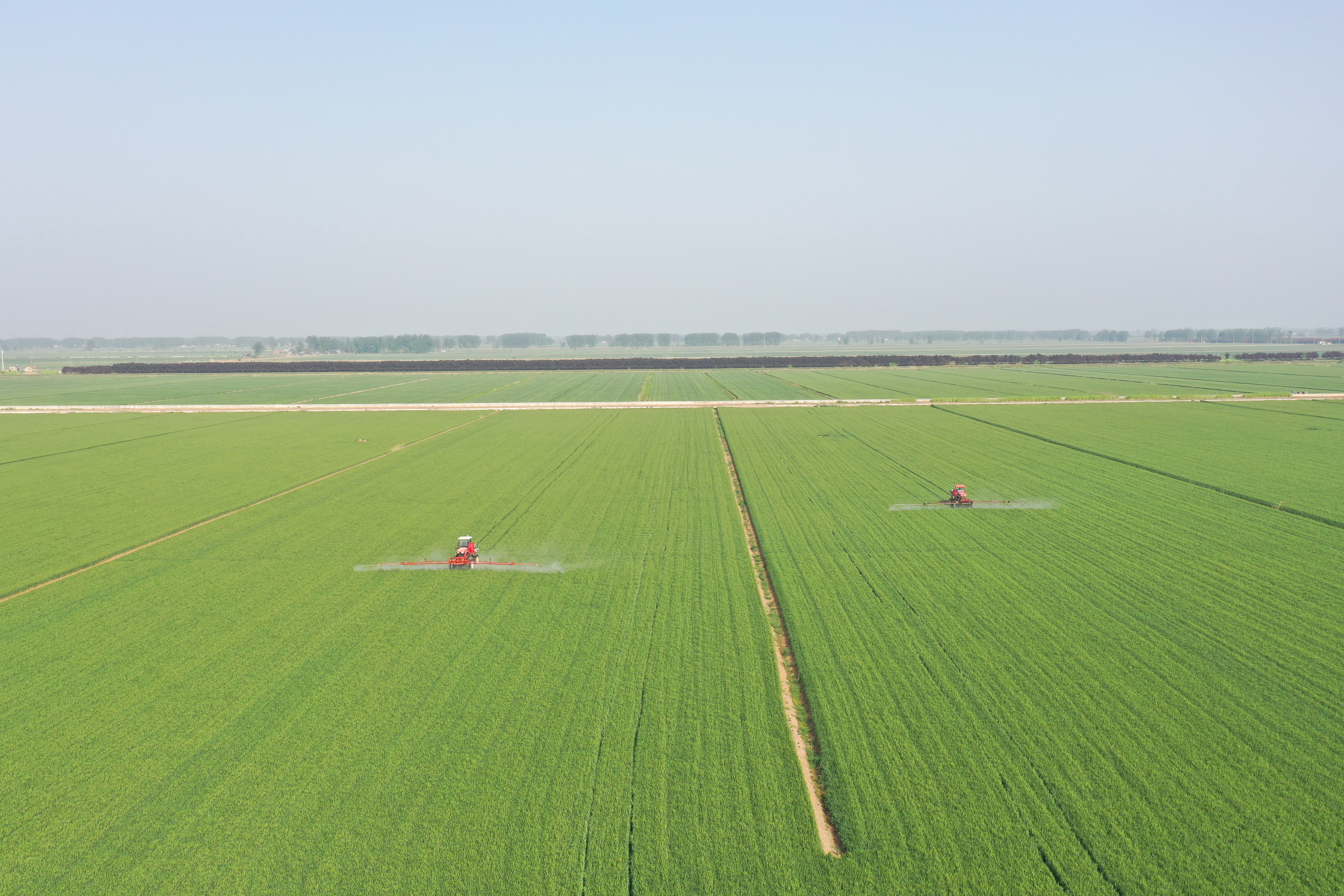 近日,在开云手机在线登录入口潘村湖农场一分场3号地,大型植保机正在开展小麦“一喷三防”作业。眼下农场3.3万亩优质专用小麦陆续进入抽穗扬花期,正是开展以防干热风、防病虫害、防早衰为主要内容的“一喷三防”最佳时机。连日来,农场坚持分类施策、科学用药原则,组织人力和机械不误农时开展统防统治作业。