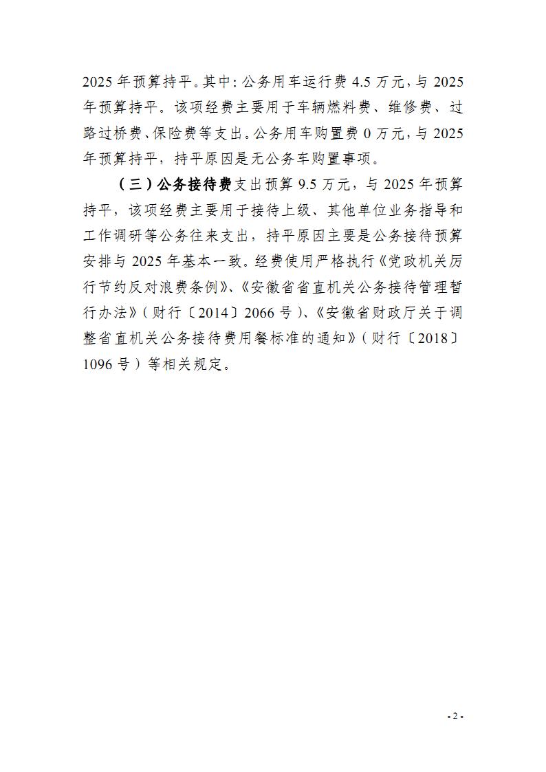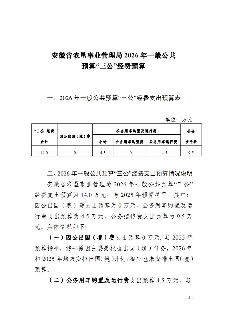 安徽省农垦事业管理局2026年一般公共预算“三公”经费预算