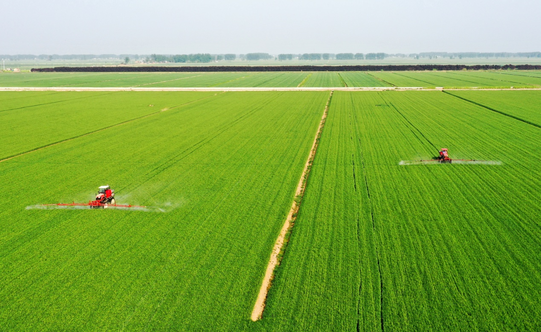 潘村湖农场实施小麦“一喷三防”作业(杨登红 摄)